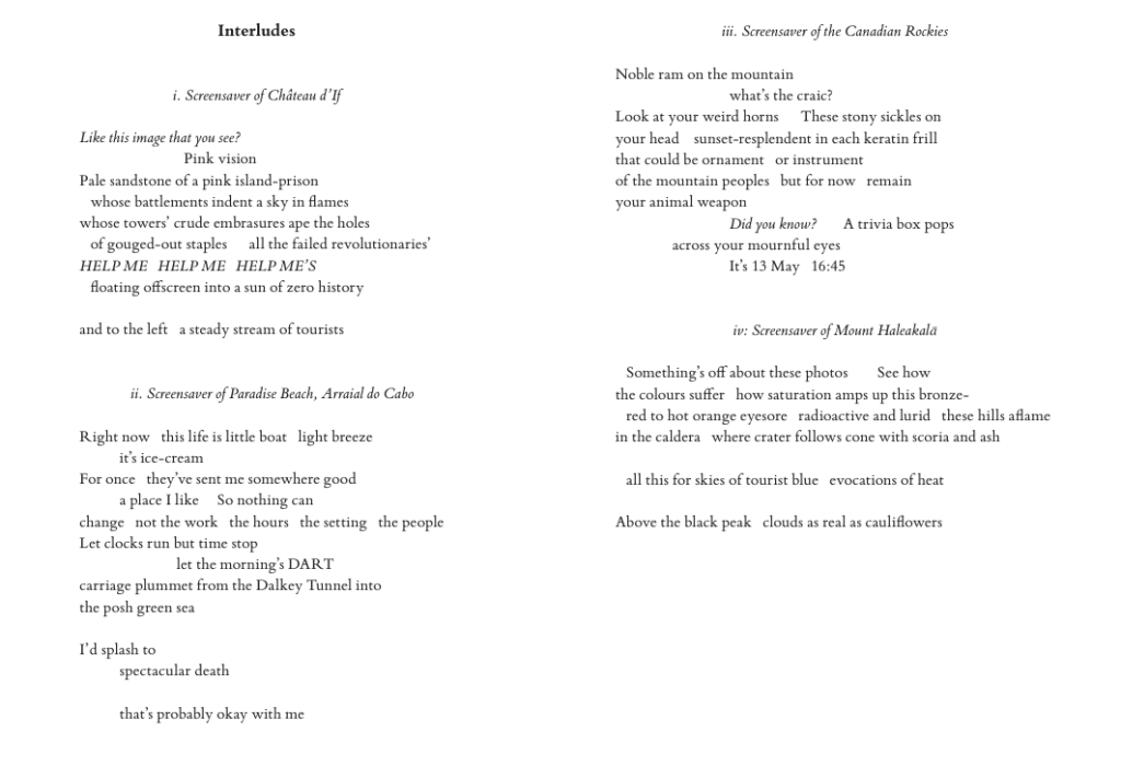 “Pink roses, green by Clíodhna Bhreatnach revels in the act of making poetry in a broken world. Whether it’s while finding palimpsests in an archive, sharing secrets under a photocopier’s protective sound-wash, or watching Dusty Springfield unwittingly lip synced with a football crowd, Bhreatnach’s keen eye picks out the poetic juxtapositions of the mundane and elevates them to a place of strange and singular beauty. Frustrated, thought-provoking, formally ambitious and always witty, these poems herald a compelling new voice.” – Jessica Traynor.